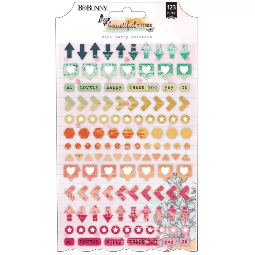 Legújabb termékcsaládunk a pufi matricák, melyet külföldi gyártóktól szereztünk be. Remekül felhasználható a scrapbook alkotásaidon és naplózáshoz is. Változatossága és színes grafikája miatt, igazán közkedvelt termék.