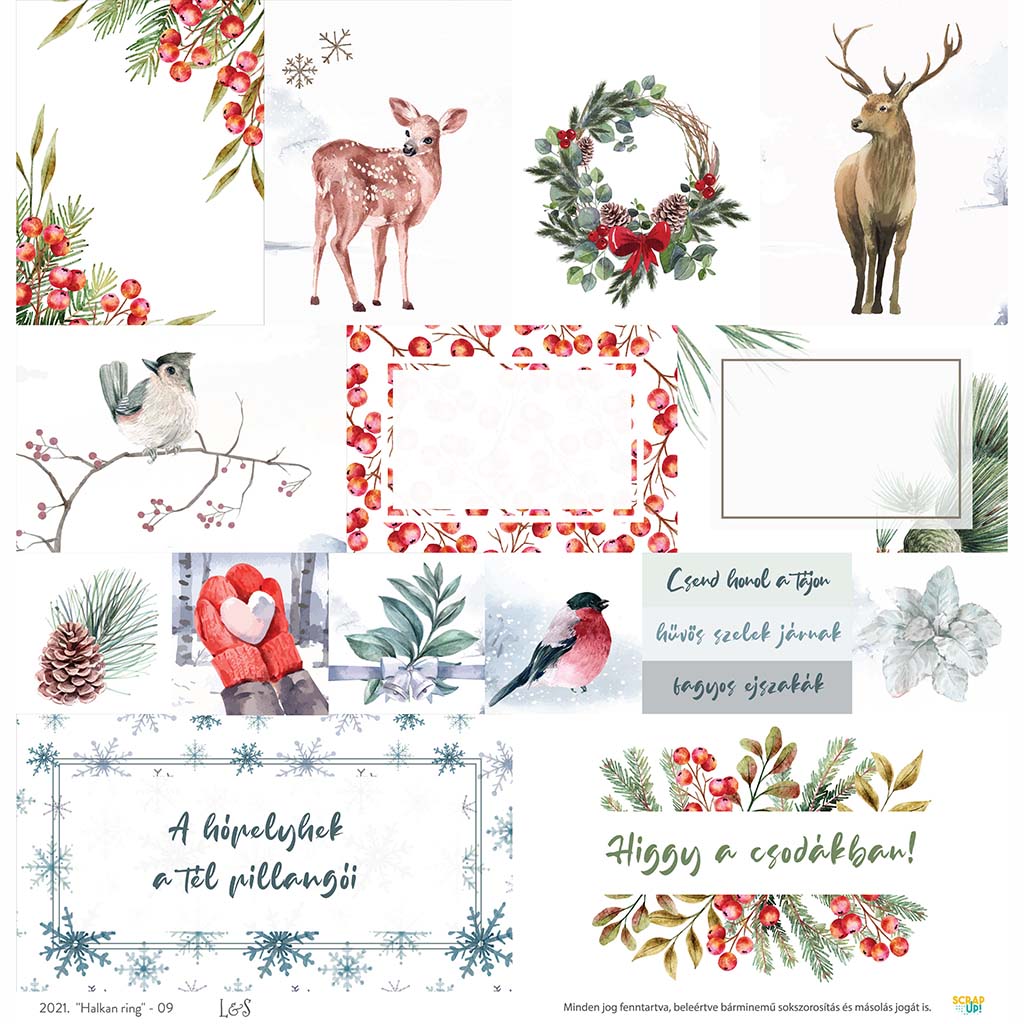 Változatos elemei remek kiegészítői lesznek minden téli alkotásnak, legyen az scrapbook oldal, album, napló, képeslap, ajándékkísérő.