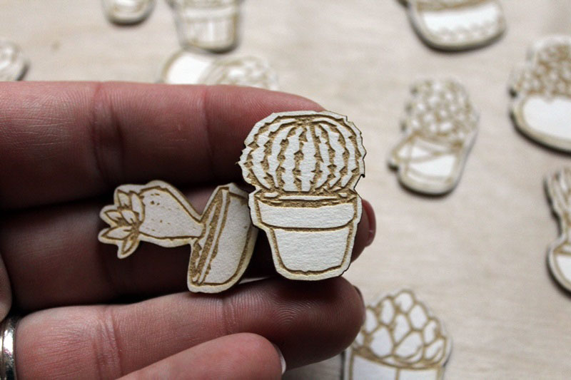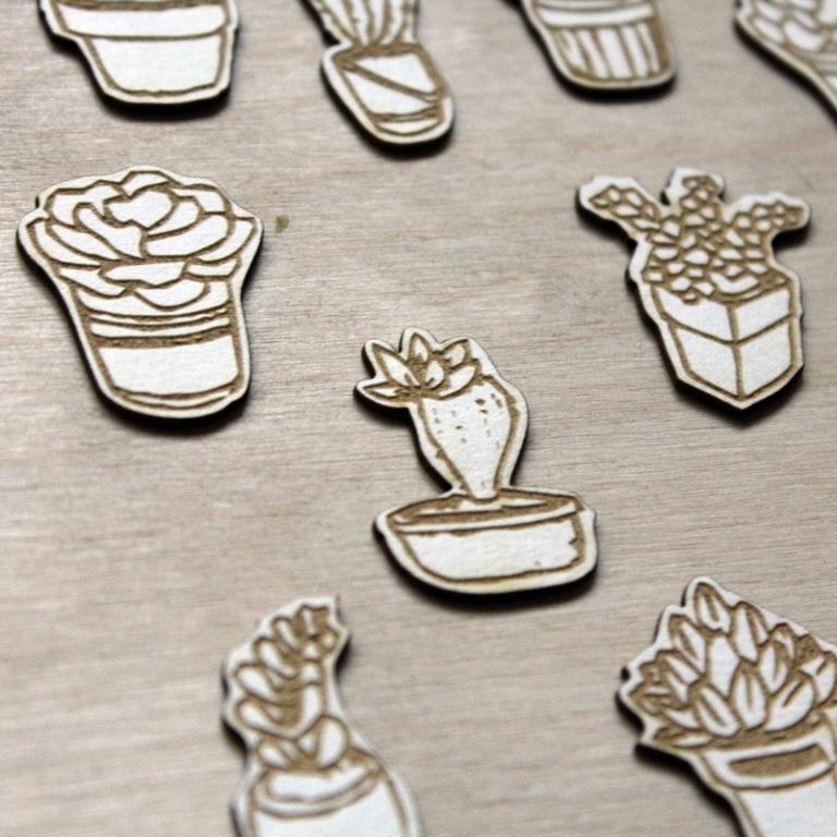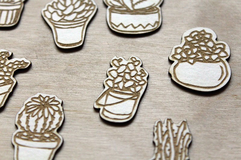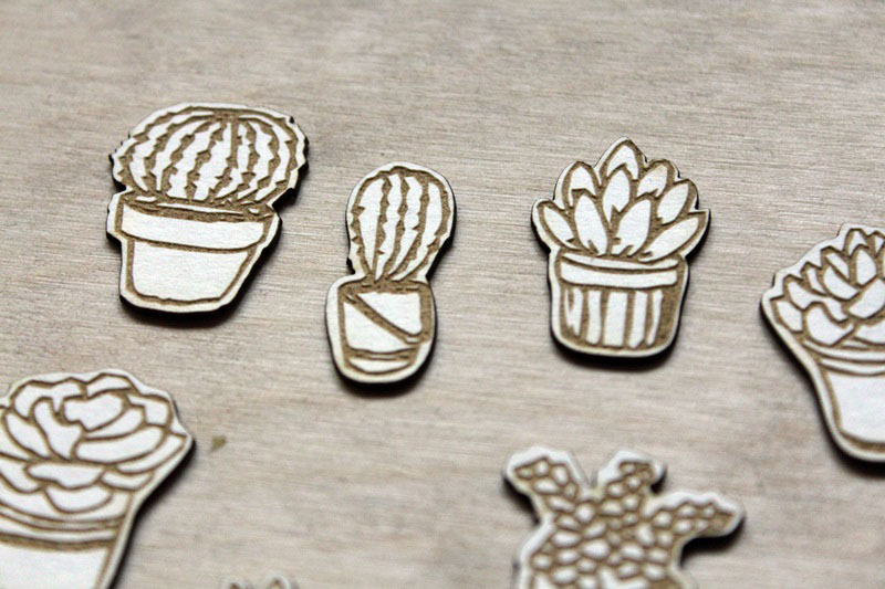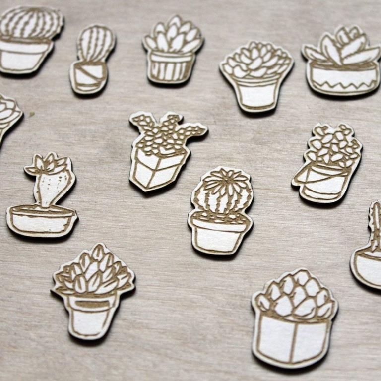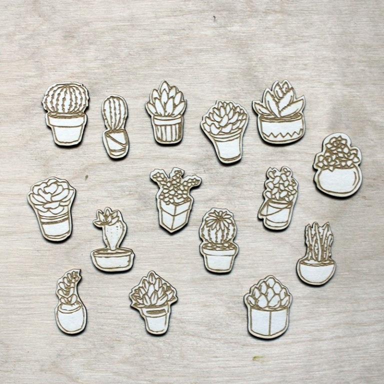 Gyönyörű, aprólékos gravírral készült cuki kis cserepes növénykék: kaktuszok, kövirózsák.