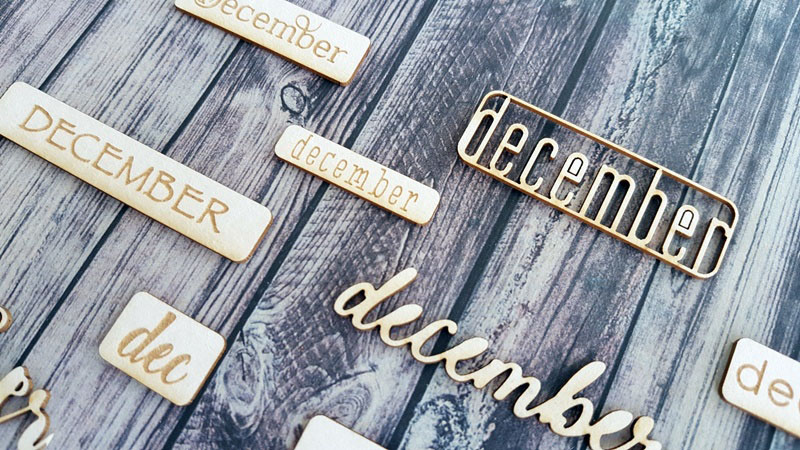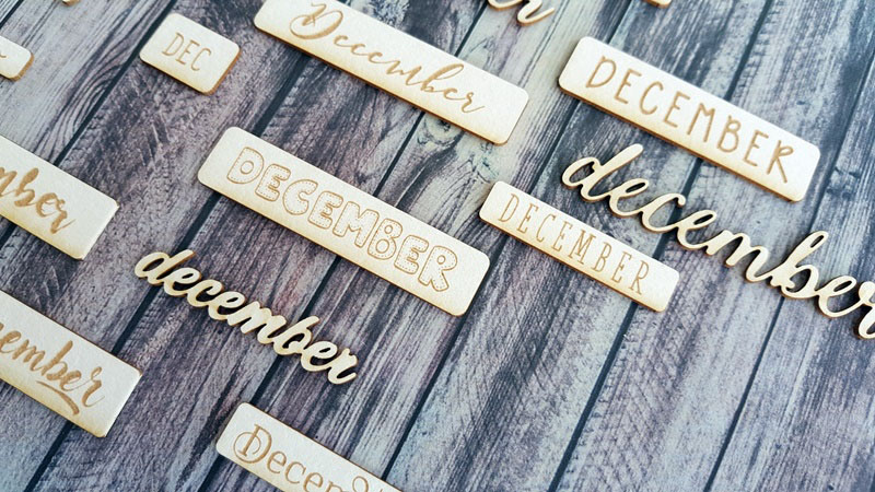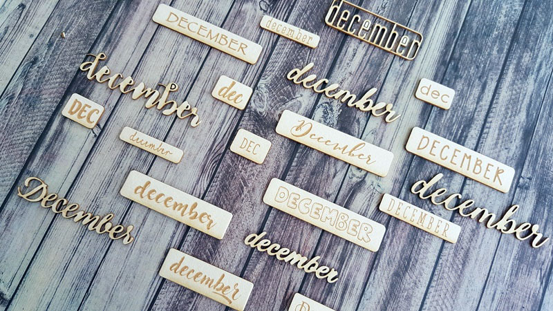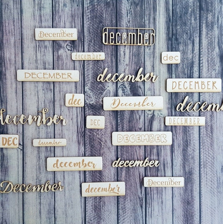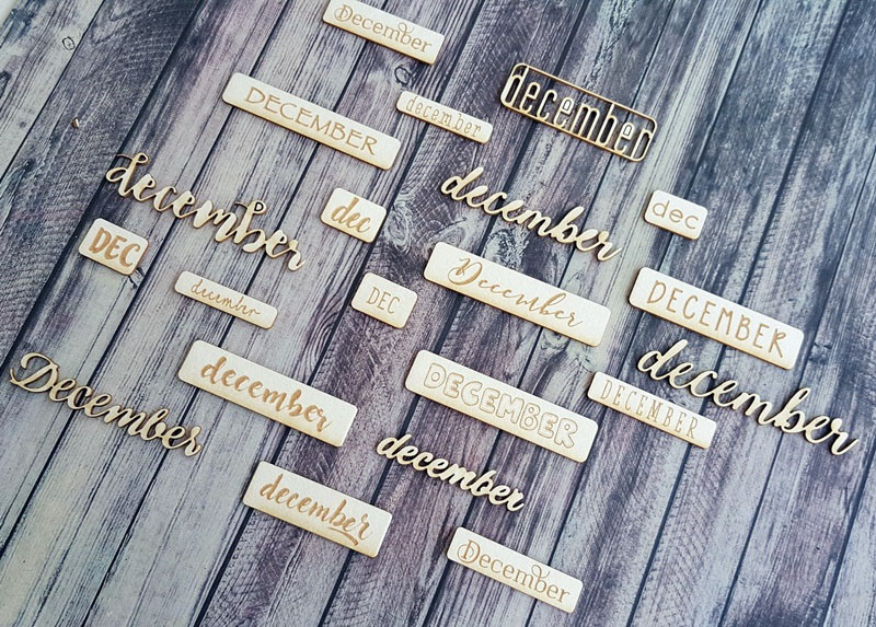 December szóchipboardok sok-sok formában és betűtípussal, mini méretben. A legtöbb 7-8 mm magasságú, tehát akár DD-be is használható a napok számához.