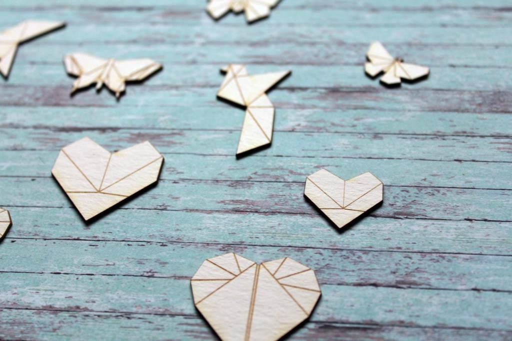 "Hajtogatott" chipboard pillangók, szívek, madárkák. Itt a tavasz, kelleni fognak az efféle díszek! :)